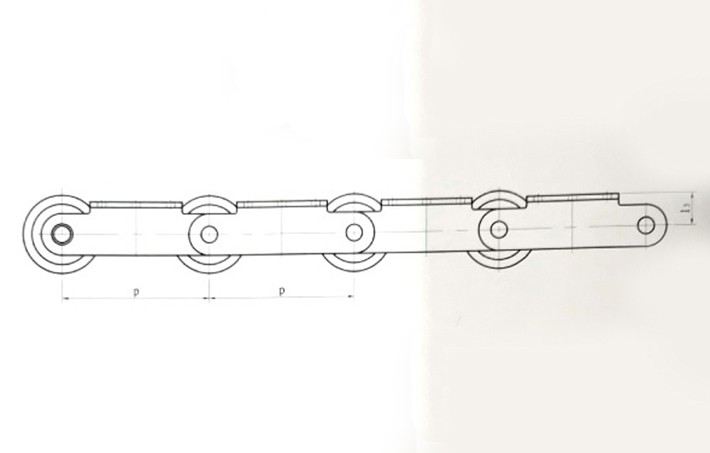 平板輸送機的鏈條,由帶K型附件的滾子套筒鏈和方管鋼組成,該鏈條在負載運行時,滾子和鏈條導軌之間是滾動兼滑動的摩擦運動形式。