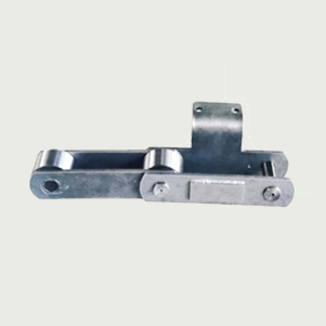 平板輸送機的鏈條,由帶K型附件的滾子套筒鏈和方管鋼組成,該鏈條在負載運行時,滾子和鏈條導軌之間是滾動兼滑動的摩擦運動形式。